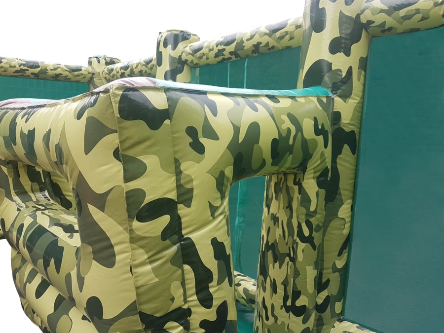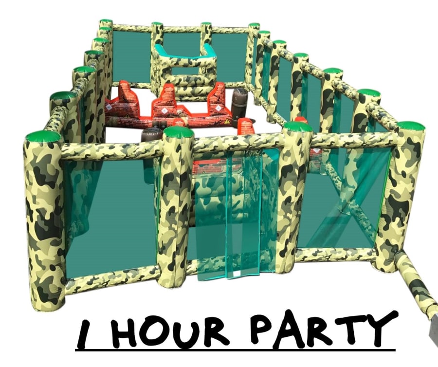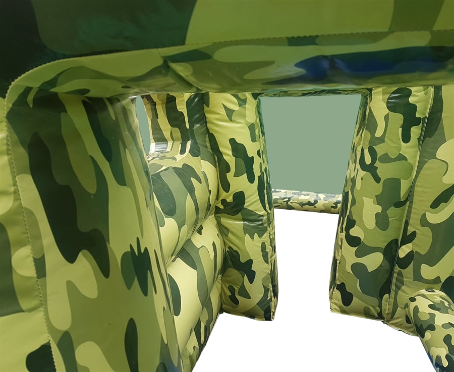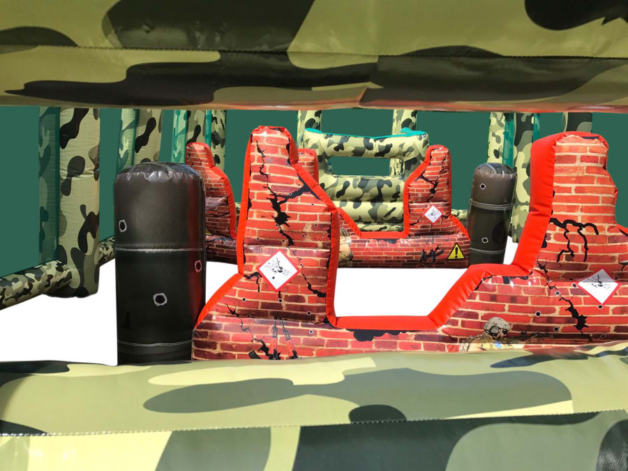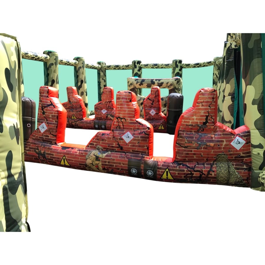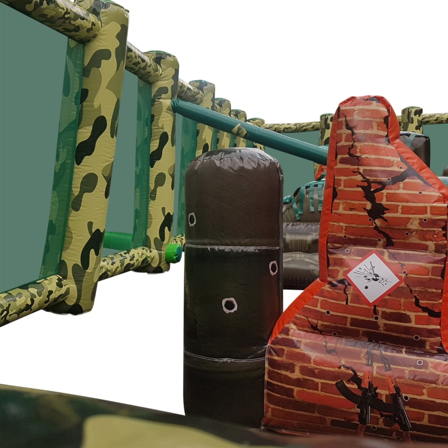 - A huge 50ft x 20ft Inflatable arena it features inflatable walls, bunkers, obstacles and even an inflatable tank