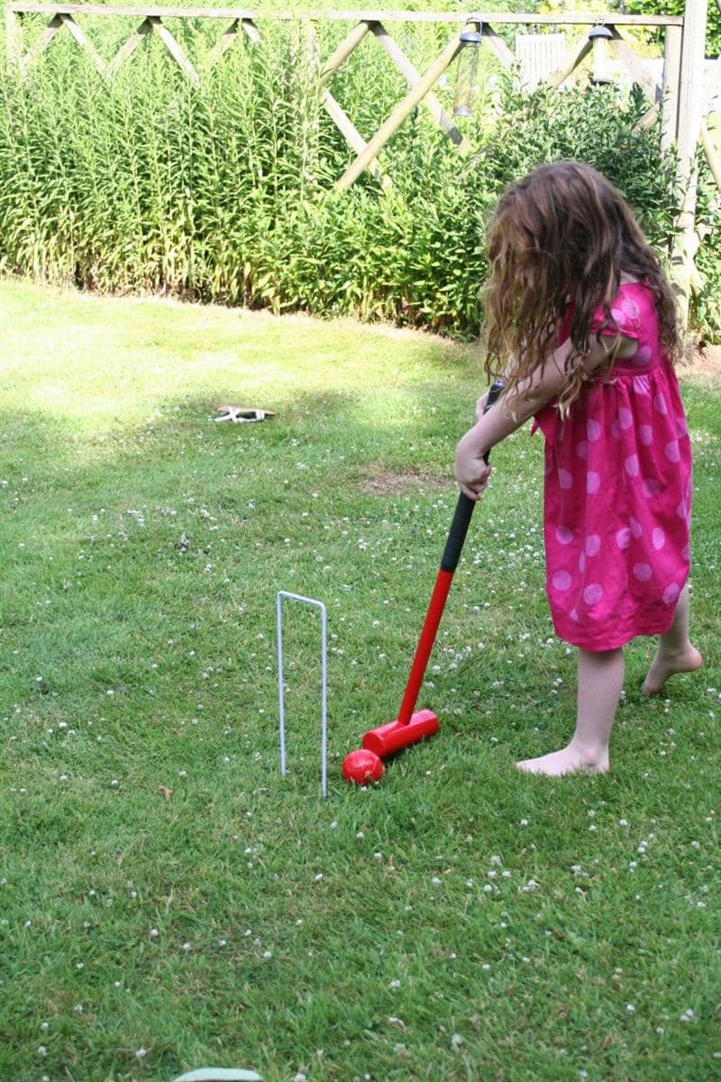 Substantial mallets but lighter and shorter than the official size make this set the perfect take along garden game. Some full sized competition sets are simply too large and unwieldy for younger players. And some toys sets are just too small and flimsy for adults to play. Our law croquet set allows players of all ages to enjoy the game. Why not hire this to have at your wedding or party for your guests to enjoy?