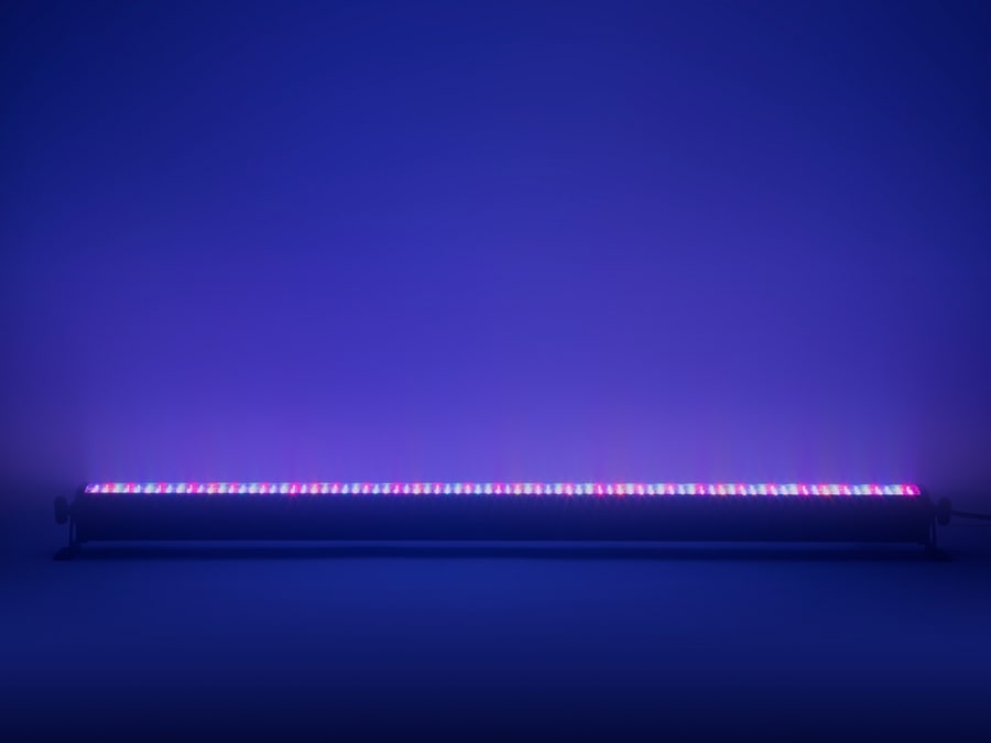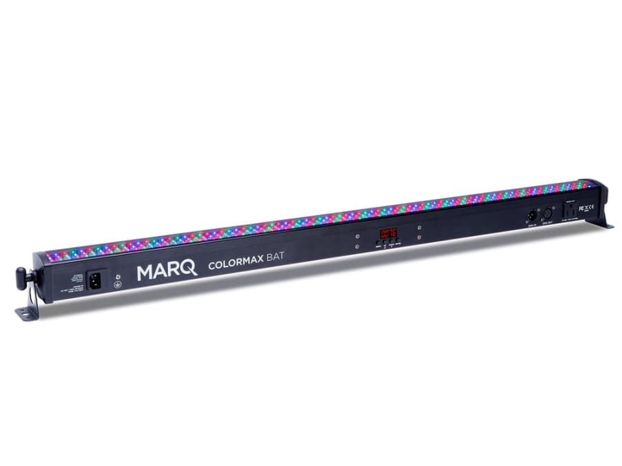 The Marq Colormax Bat is a fantastic lighting batten that features 240 x 10mm LEDs, consisting of 96 red, 72 green and 72 blue. It also features 8 individual sections of control for animated chase and stunning colour-blending effects. Its fitted hanging bracket allows the light to be used in multiple rigging or floor standing applications, depending on your needs. It also allows you to power link (daisy-chain) more than one unit together for fast setup and fewer cables. The Colormax Bat is controllable via multiple options including DMX, Master/Slave, Sound-Active and is compatible with the Colormax IR remote control.
