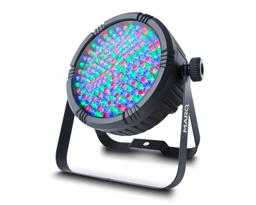 The Marq Colormax PAR64 Wash Light features 177 LED's that break down into 60 red, 60 green and 57 blue which can mix a wide range of colours. The Marq Colormax PAR64 can either be mounted onto a lighting stand or truss but also has a sit-flat design so the light can be adjusted to suit your lighting needs. It has several control options that include DMX, sound active and manual.