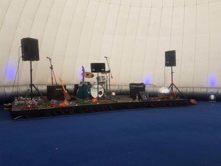 Need a stage for an event in a hurry? Our portable stage consists of 18 separate 1m x 1m squares that can be positioned together in any configuration to fit your space and your needs. The platforms are covered with grey carpet and are perfect for public events, bands, weddings, and school performances. We can even build a special package for you that will include lighting and sound systems.