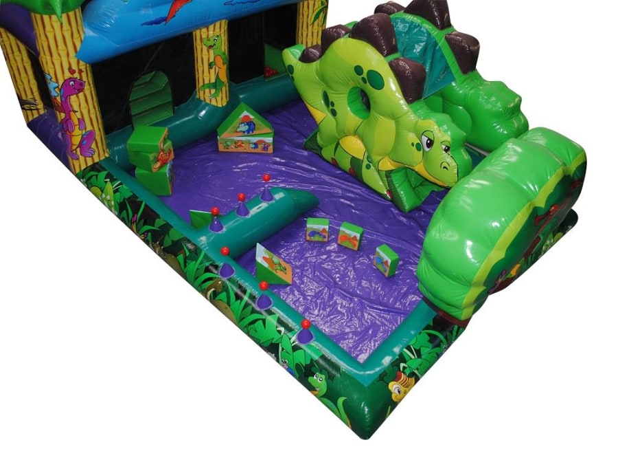So much more than a simple bouncy castle - our Dinosaur Playzone is the ultimate adventure playground for kids and at 21 x 16 ft this is HUGE! A friendly dinosaur will watch over proceedings while your kids can bounce on the inflated sections, take turns on the two inflatable slides (one goes straight through the dinosaur) and even hide in the ball pool. This playzone includes a 10 piece soft play set and is ideal for indoor parties or birthdays and will keep the children (and the adults) happy for hours.